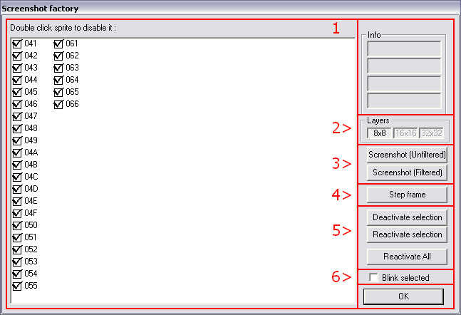 - Checking this box will make the sprite blink on the main window once you select it in the white area. Useful for identifying which sprites are which.