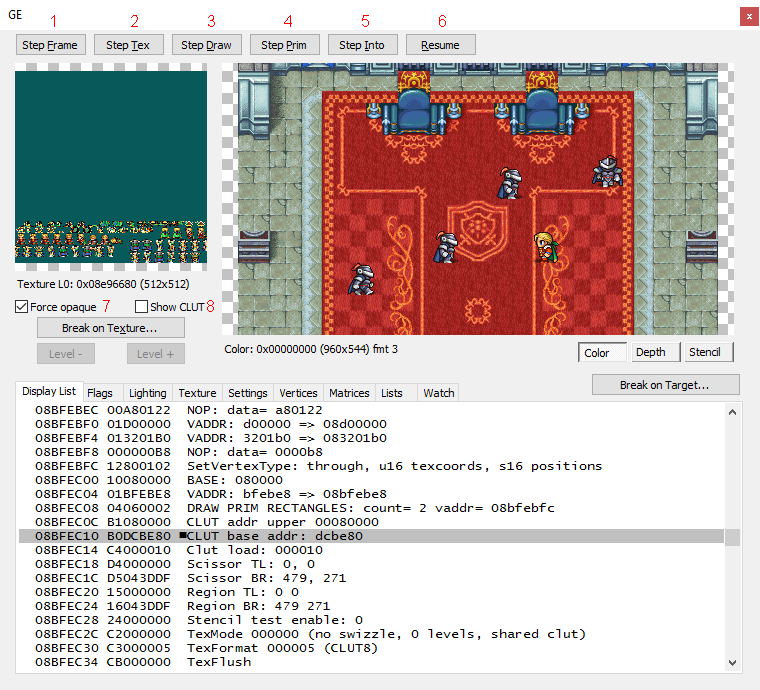 6. Resume: Unpauses Emulator while GE Debugger is still active.