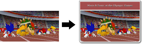 Game Icons use the same style across all sites. They are created by a 240px x 125px cropped screenshot from a game (not its cover art). The website itself inserts code surrounding the image to represent it in the form of a Game Icon.